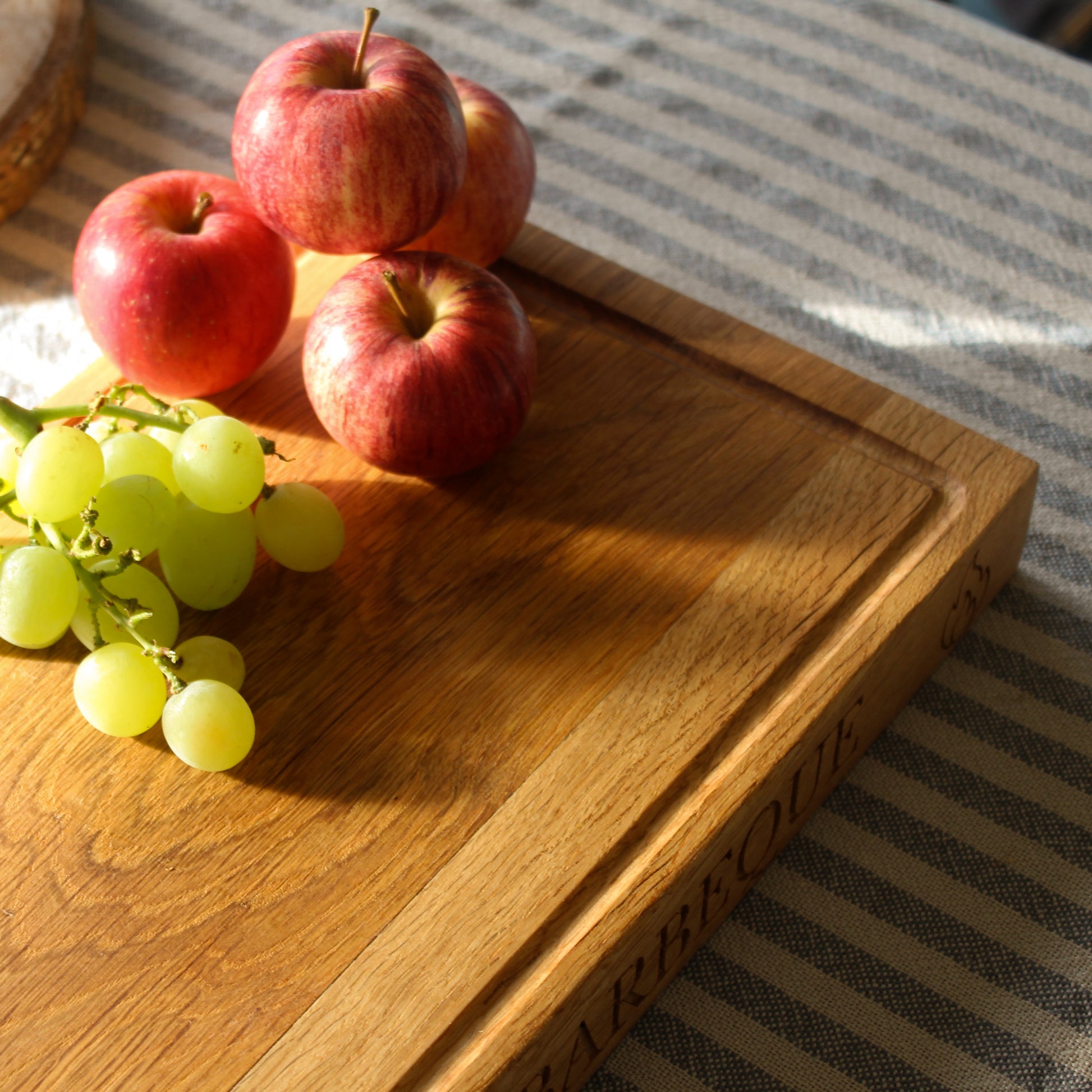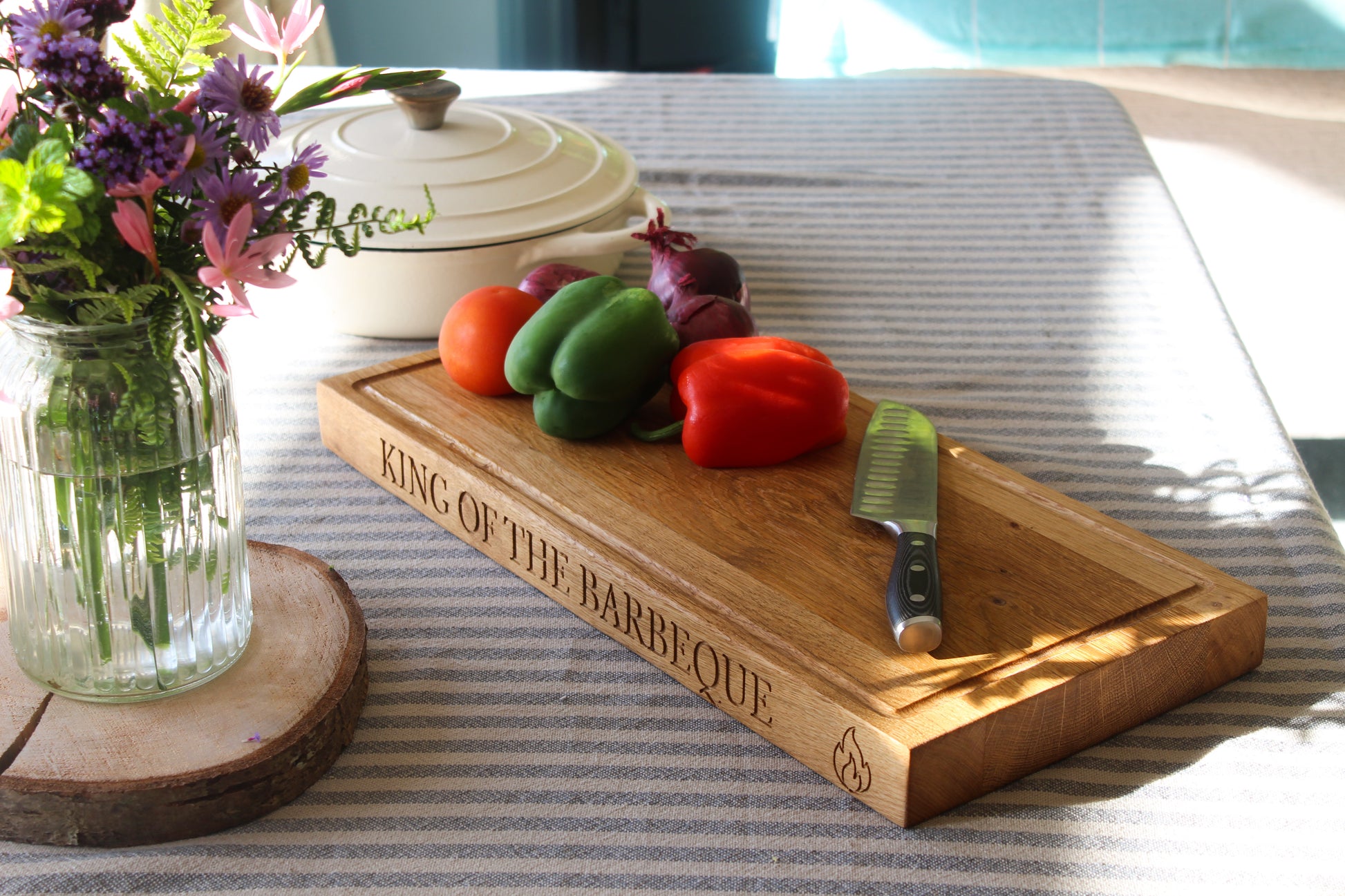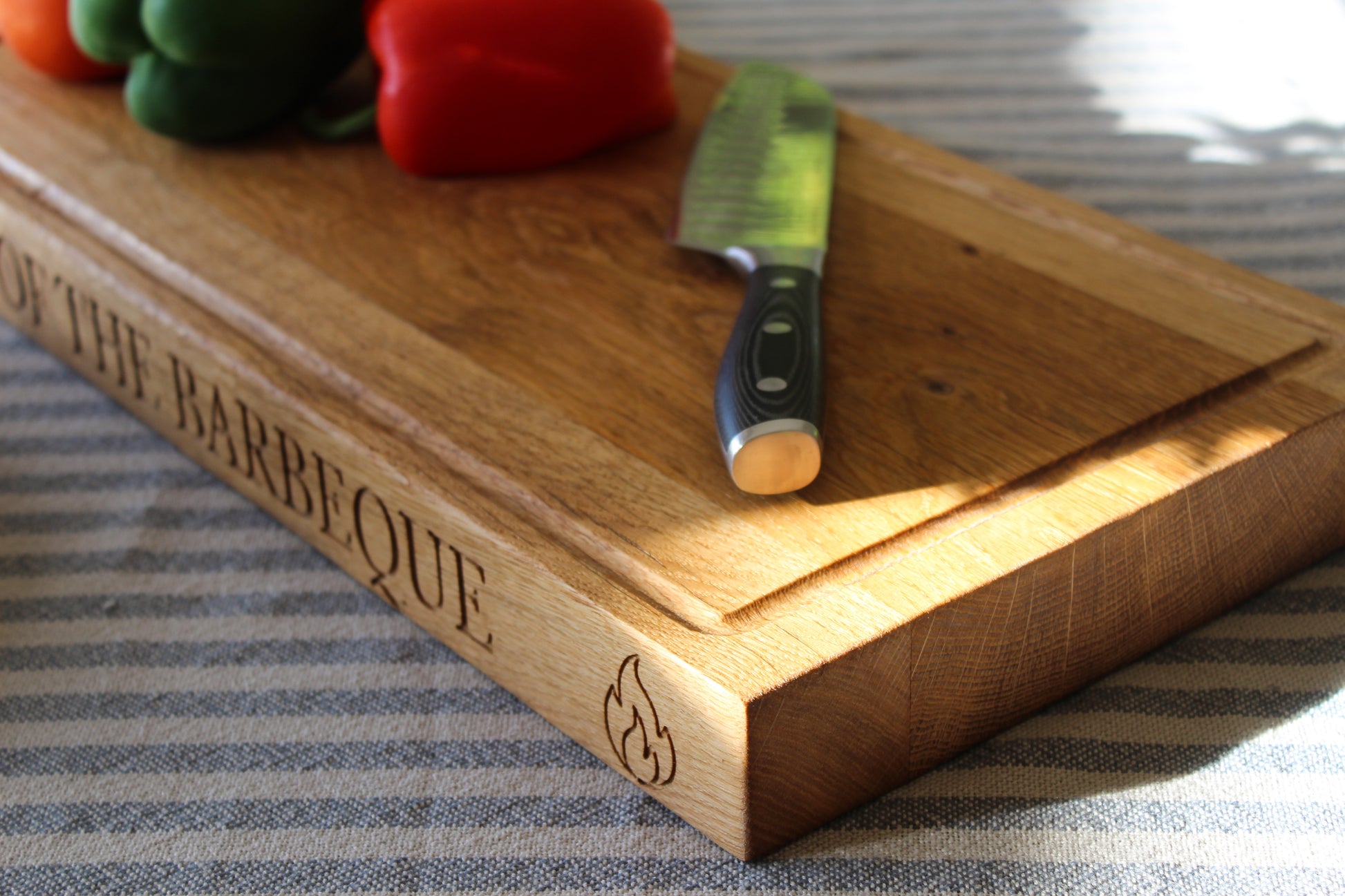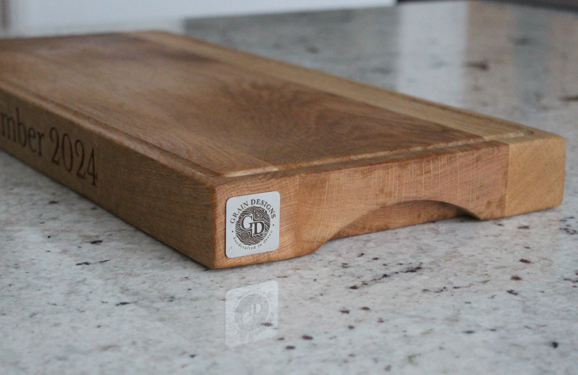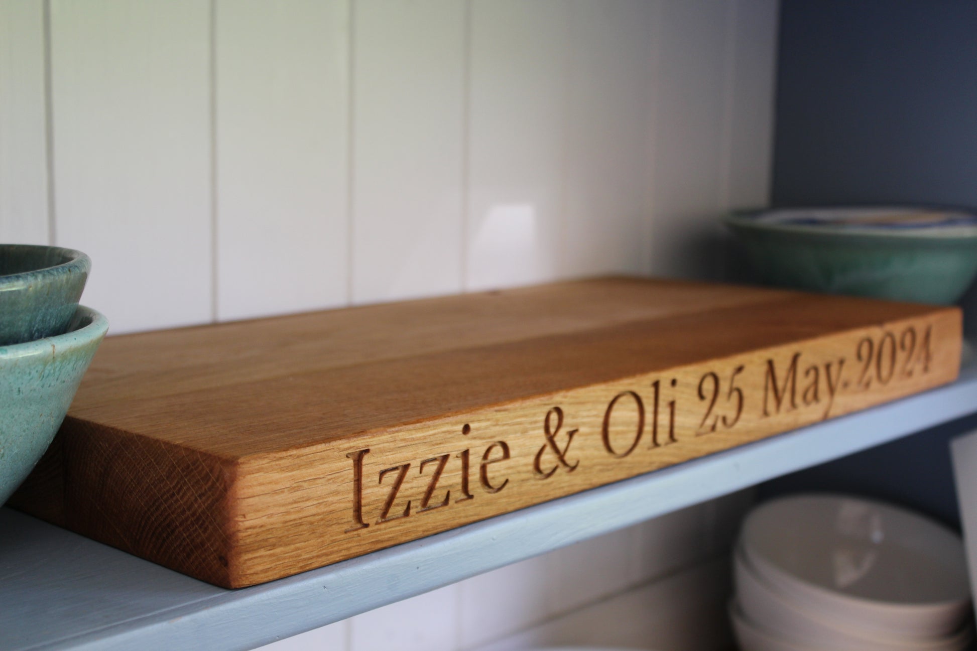 Our Handmade Oak Chopping Boards can be engraved on both the front or back making them ideal as a housewarming, anniversary, wedding, birthday or christmas present.