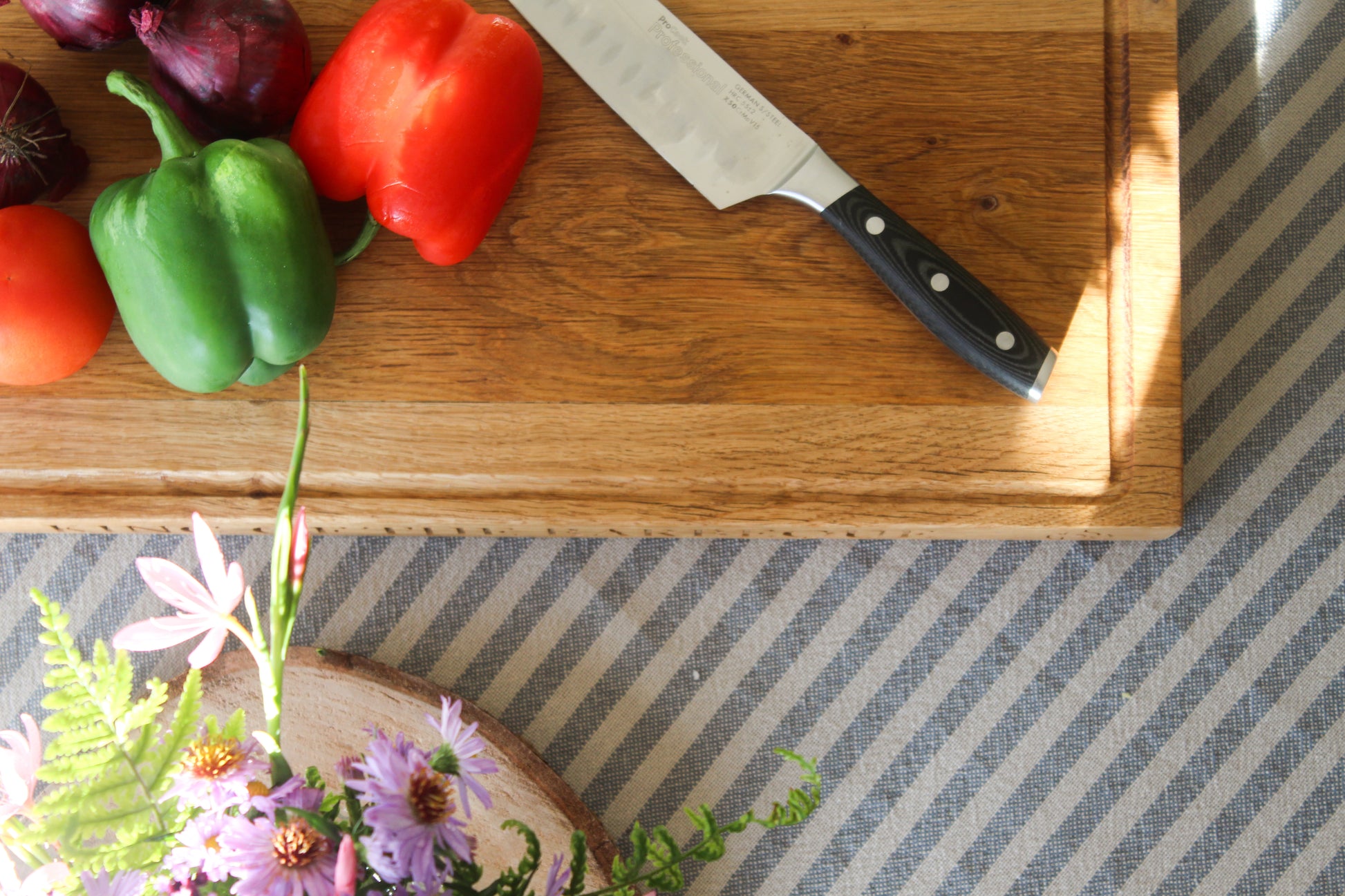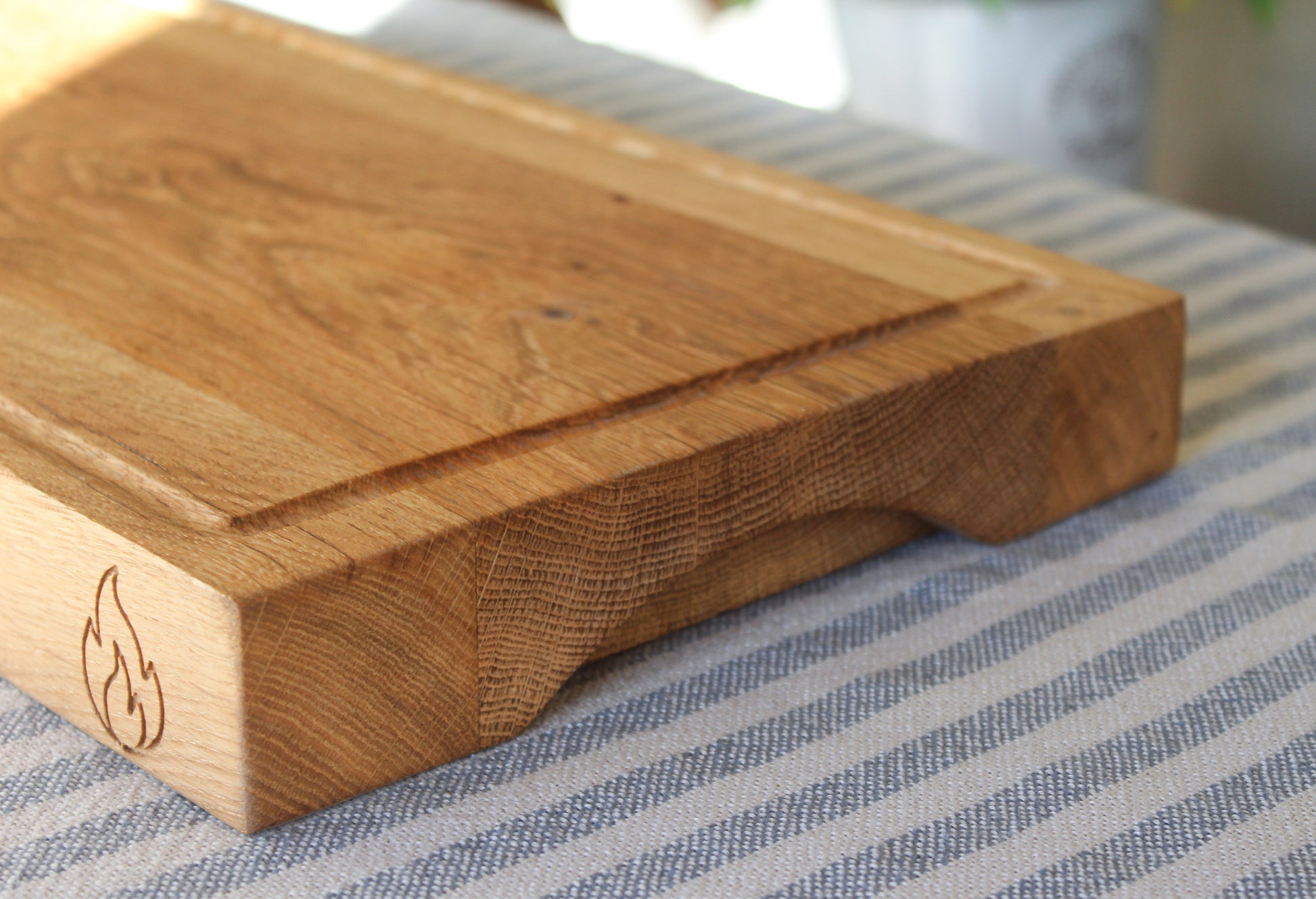 Additionally, you can choose a custom length and add a drainage edge and/or handles. As our boards are made of solid oak, the handles make them easier to manoeuvre and use as a serving board.